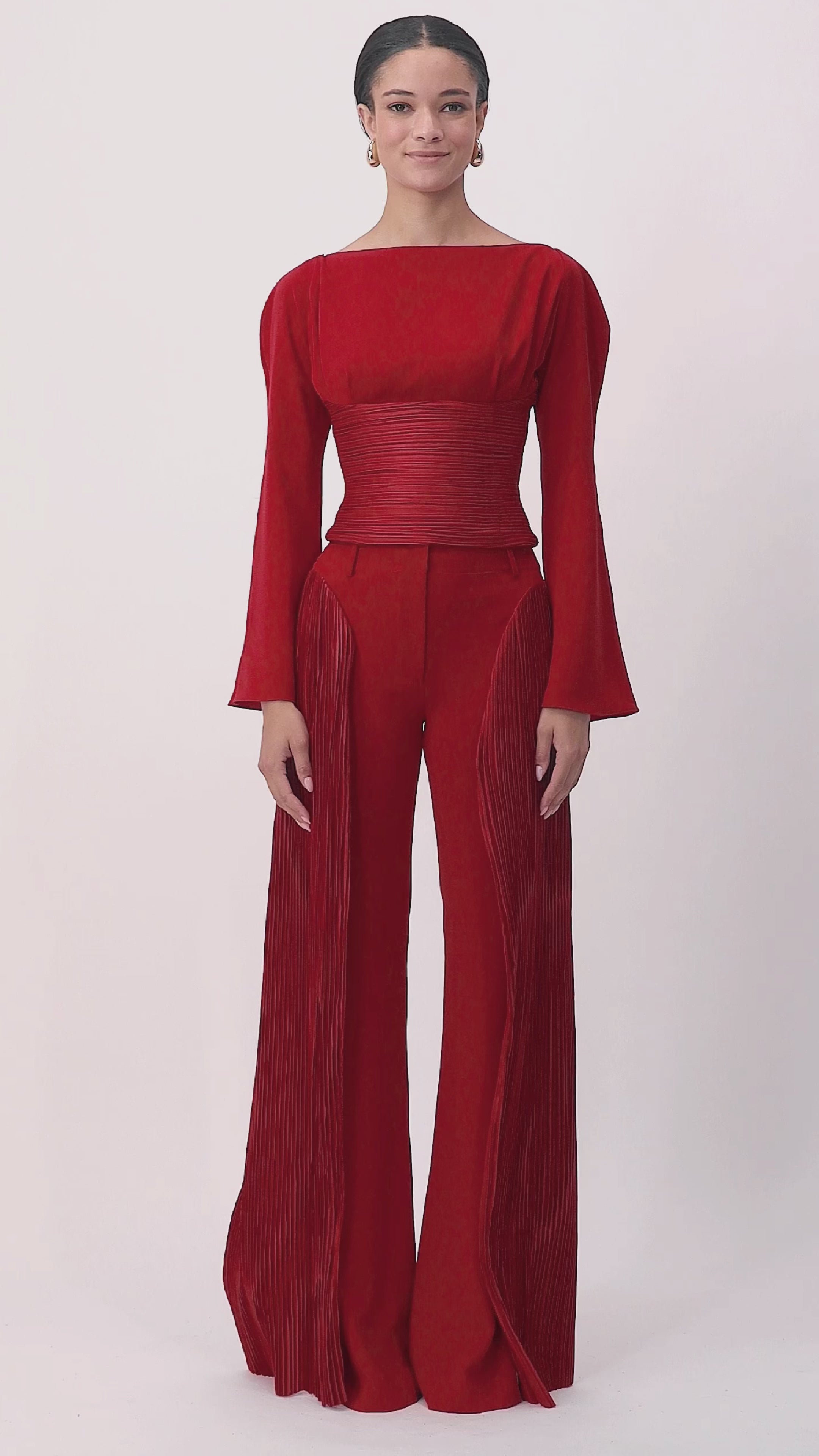The 'Alora' top is a perfect addition to your wardrobe. this fitted top is sleek and exquisite with couture-level tailoring . Style yours with the Ruby pants for a that special occasion .
