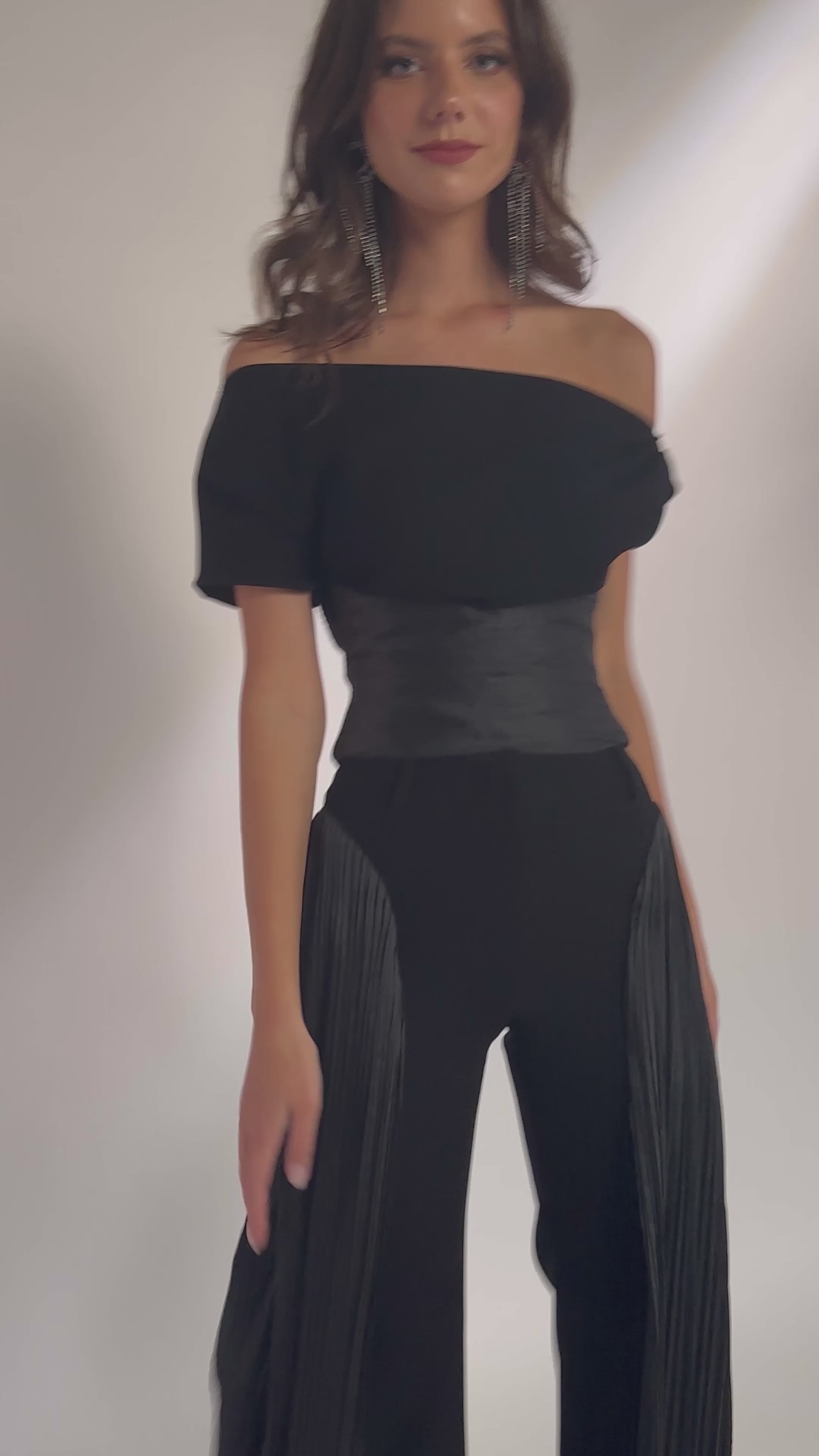 This perfectly pleated fitted top is sleek and exquisite with couture-level tailoring . Crafted from specially pleated taffeta —style yours with the Blaze pants for a that special occasion .