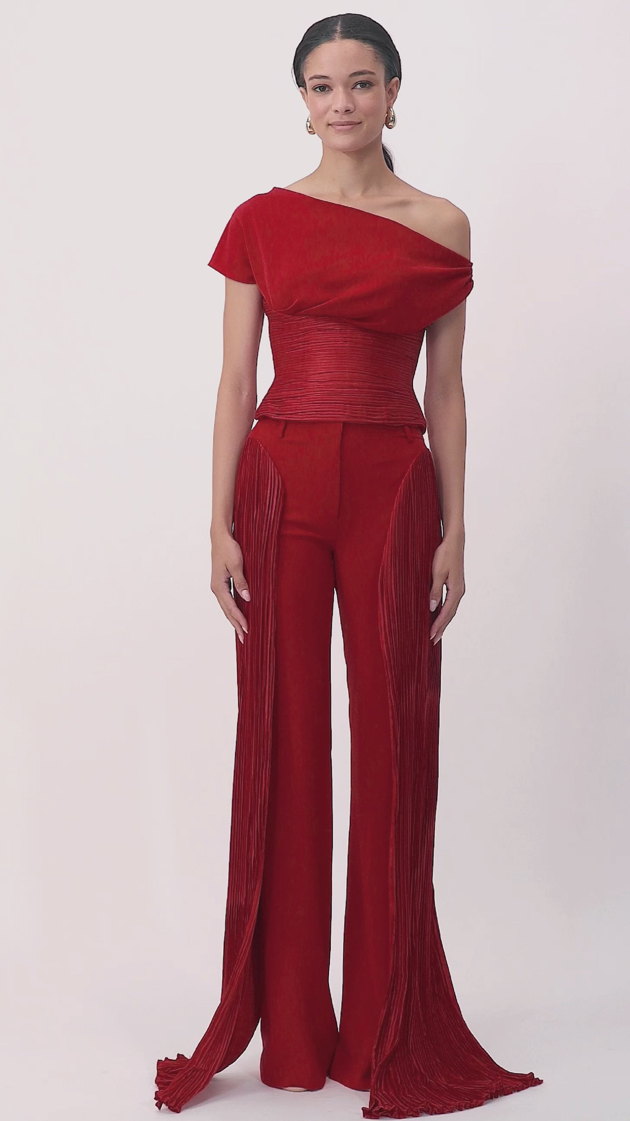 The 'RUBY' top is a perfect addition to your wardrobe. this fitted top is sleek and exquisite with couture-level tailoring . Style yours with the Ruby pants for a that special occasion .