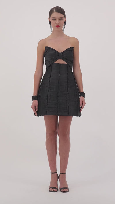 The 'Becky' brings glamour and femininity to new heights, featuring a structured  silhouette decorated with delicate  embellishments.  Made with CECE signature pleated taffeta.