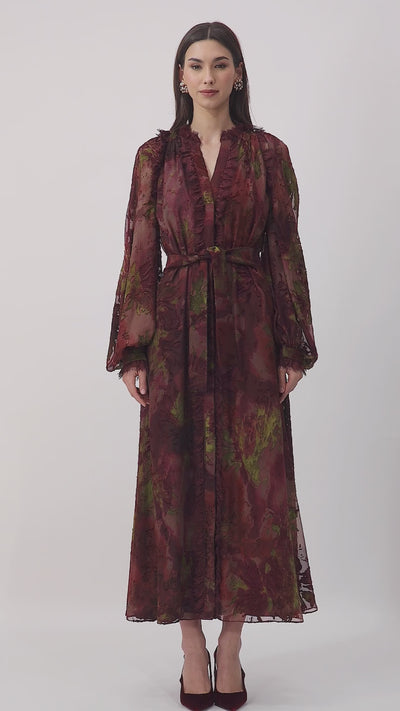 Embrace effortless elegance with the 'Eos' dress, designed for a loose and airy fit that ensures all-day comfort. A matching belt cinches the waist for a flattering silhouette, while delicate lace accents along the neckline, sleeves, and center add a touch of romance and sophistication. Perfect for both daytime events and evening soirées, this dress is a timeless blend of charm and grace.