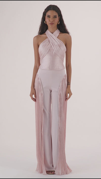 Introducing the Valia top designed for your playful, feminine side. a halter corset crafted from the brands signature taffeta, it pairs perfectly with the Zaria Pants for an unforgettable night out.